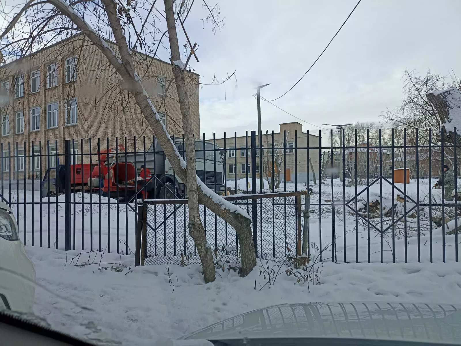 На территории МОУ СОШ №1 Копейска сегодня было шумно - рабочие убирали спиленные ветки. Об этом сообщили местные жители.
