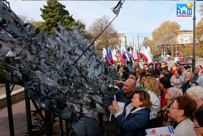 10-метровый арт-объект – кованую карту России – представили 4 ноября в Симферополе. На нем каждый регион представлен каким-то узнаваемым символом.