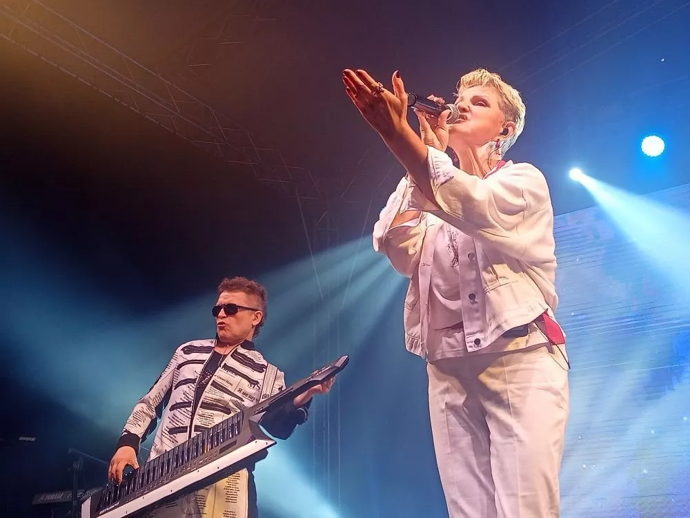 Маргарита Суханкина исполнила старые хиты группы «Мираж» - «Музыка нас связала,», «Больше не прошу», «Я снова вижу тебя».