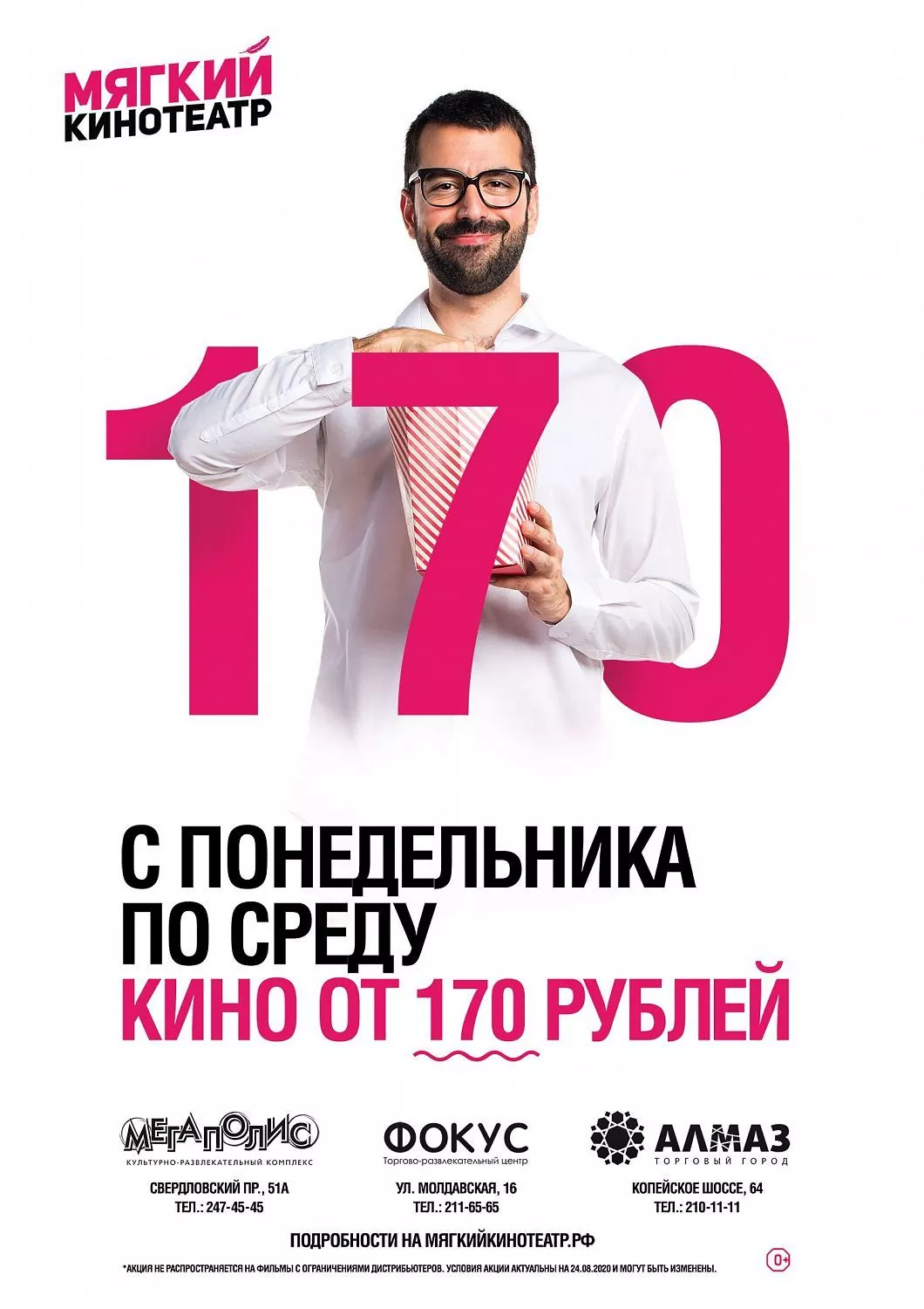 Вместе с кинотеатрами возвращается и любимая многими акция «Киномания» - кино за 170 руб. в «Мегаполисе» и в «Фокусе», и за 190 руб. в «Алмазе».