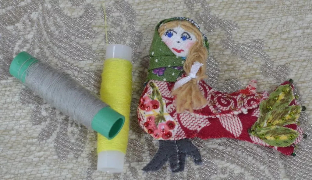 Барышни корпели над панно к «Бажовскому фестивалю». На ткани будет изображено дерево с тех самых коряжек, на которых «сядут» и будут болтать ножками вот такие необычные сказочные птички-девочки с человеческими лицами. Как объяснили авторы: работа ни к чему не привязана, ничего не олицетворяет, не несёт никакой смысловой нагрузки, просто делается «ради удовольствия». Поверьте мне на слово – очень милое панно получается.