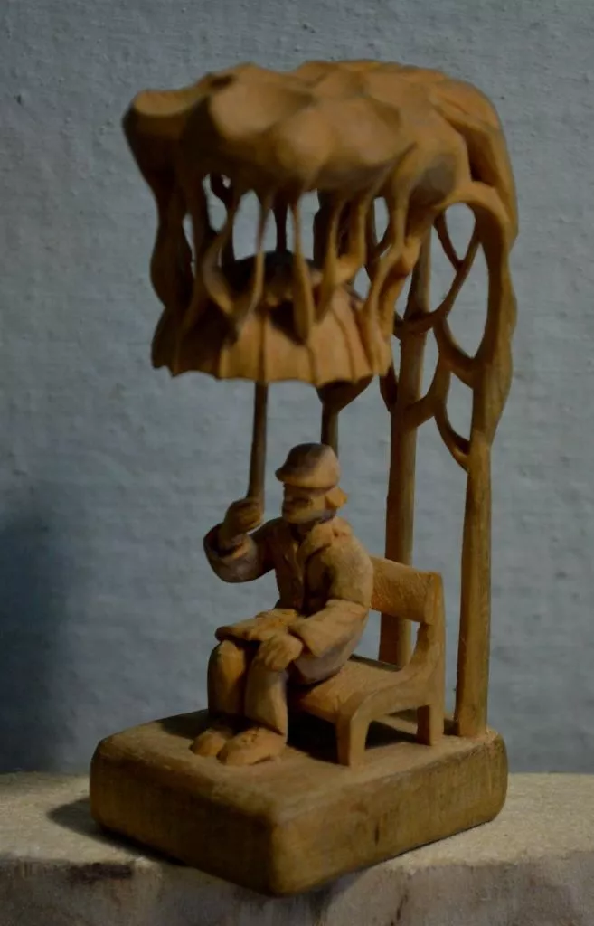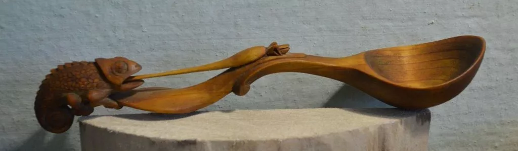 Начинал с резьбы масок, потом курительные трубки, ложки, гребни и, наконец, статуэтки-миниатюры. Самое главное: все изделия делаются из цельного куска дерева, и никаких соединений и склеек. Это важно.