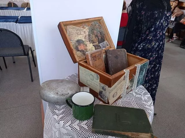 На встрече звучали воспоминания ветеранов, зрители слушали скрипку, русские романсы и песни послевоенных лет. Руководитель немецкого культурно-образовательного центра Ирина Вейс представила экспозицию предметов быта военных и послевоенных лет.