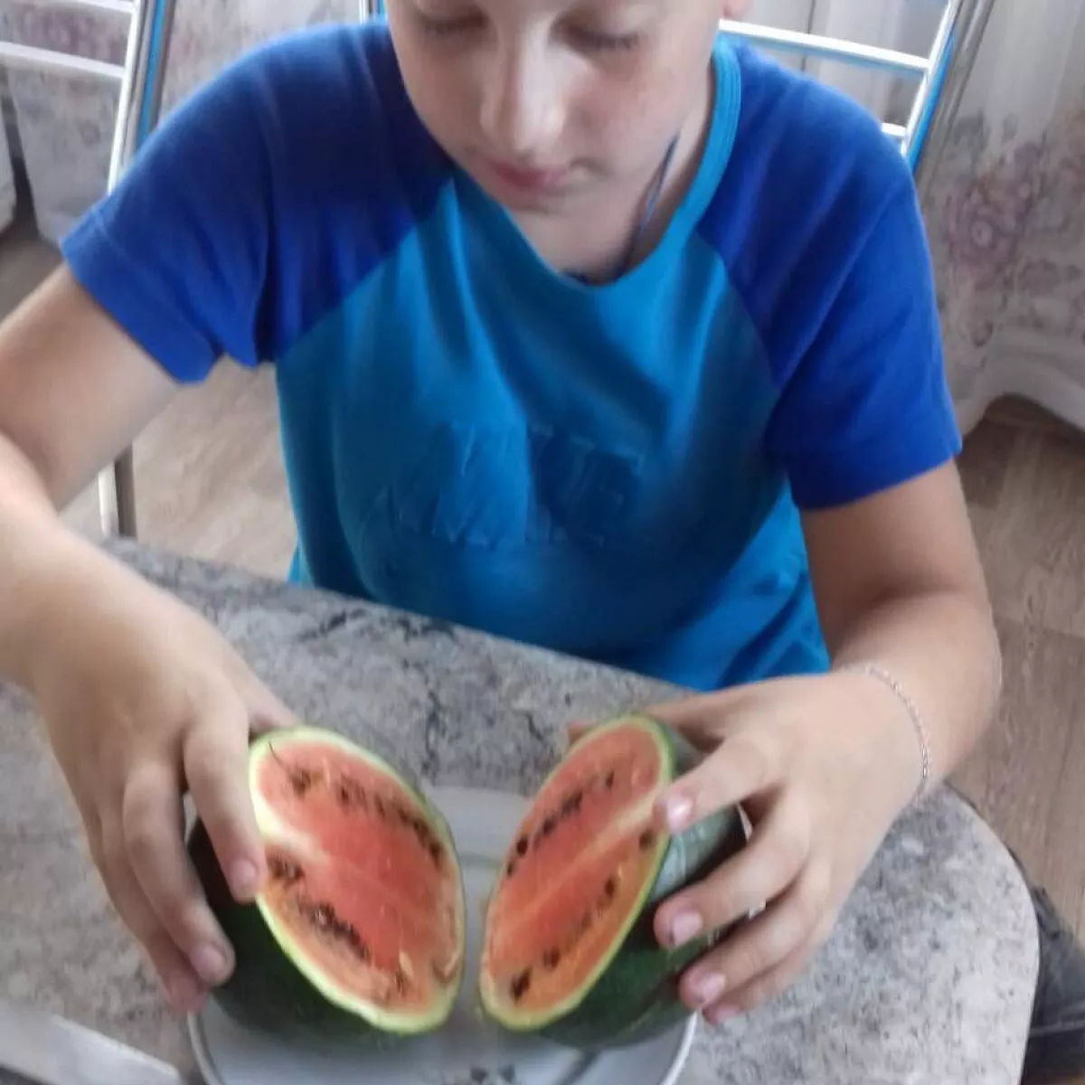 Нынешняя аномальная жара оказалась для арбузов очень кстати. И вот в конце августа Артем наконец-то снял сладкие и сочные бахчевые со своей грядки. Их с удовольствием попробовали родные и друзья мальчика.