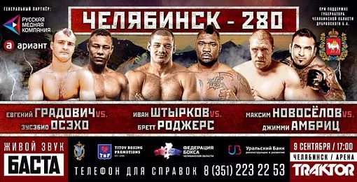 В честь 280-летия города на арене «Трактор» состоится беспрецедентный супер-бой. Организовало шоу профессионального бокса компания Titov Boxing Promotions, генеральный партнёр – Русская медная компания. Существенную поддержку оказали губернатор области Борис Дубровский и администрация Челябинска, а также холдинг «Ариант».