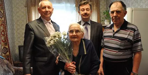 Не зря говорят, что после ста лет каждый прожитый год — юбилейный. Поздравить ветерана, пожелать здоровья пришли заместитель главы города Владимир Бисеров, председатель городского совета ветеранов Павел Савуков, председатель совета ветеранов поселка Старокамышинска Неля Копф, а также родные и соседи. Именинница встретила гостей, как говорится, при полном параде и за праздничным столом, накрытым с помощью правнучки Веры.