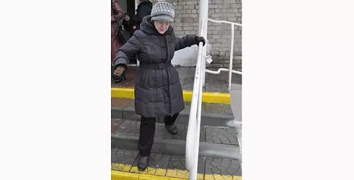 — Здание соцзащиты — одно из немногих в городе, где на входе имеются цветовые обозначения опасных мест. Здесь край самой нижней и край самой верхней ступеньки обозначены при помощи желтой краски, а на стеклянной двери в соответствии с требованиями безопасности сделана наклейка — желтый круг. Почему желтый? Этот цвет слабовидящие перестают видеть в последнюю очередь. Правда, я сама его не различаю, поэтому предпочитаю при подъеме и спуске пользоваться пандусом.