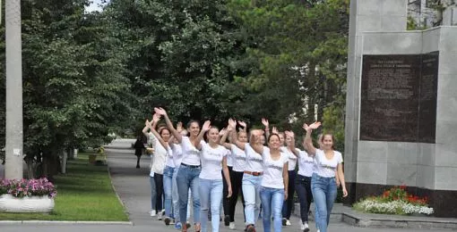 У здания администрации собрались люди разного возраста, в том числе и воспитанники коллективов ДК Кирова. Участники прошлись по площади Красных партизан в белых футболках. Видеокамера запечатлела, как они пели, танцевали и даже выполняли паркур трюки.
