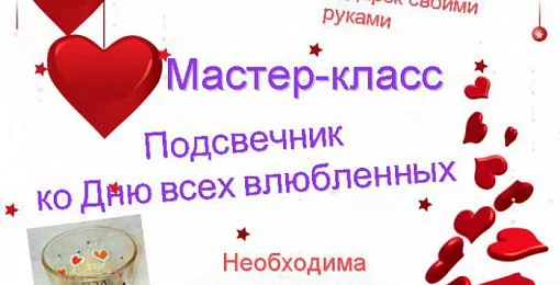 Каждый желающий сможет изготовить своими руками оригинальный подсвечник и подарить его своей второй половинке на праздник всех влюбленных.