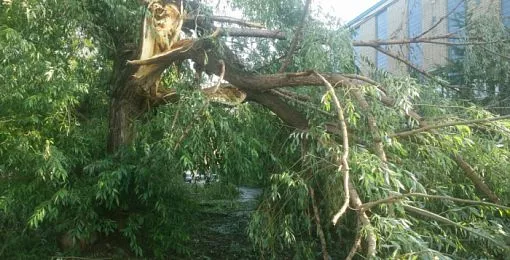 Поломанные деревья, оборванные провода, помятые машины. Где-то шквал бросил на автомобиль пластиковый контейнер, оставив серьезную вмятину, во многих местах города на машины попадали мощные стволы деревьев.