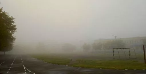 Облака опустились на землю. Копейск утром окутал густой туман