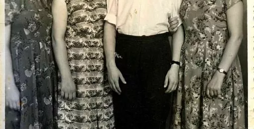 Ольга Копысова прислала на конкурс снимок, сделанный в далеком 1961 году, сопроводив его такой подписью: «Здесь запечатлены младшие дети Агафьи Ефимовны и Ивана Петровича Рыбаловых – сын Виктор и дочери Галина, Валентина и Екатерина. Фотоснимок был сделан в день отъезда Виктора на работу по распределению в г. Сталинск после окончания техникума».