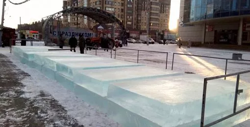 Со вчерашнего вечера стартовали работы по строительству ледового городка на площади Трудовой Славы. Сюда привезли первую партию ледяных плит, прибыла техника.