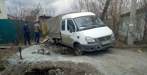 В Челябинске «Газель» с тяжелым грузом наполовину ушла под землю