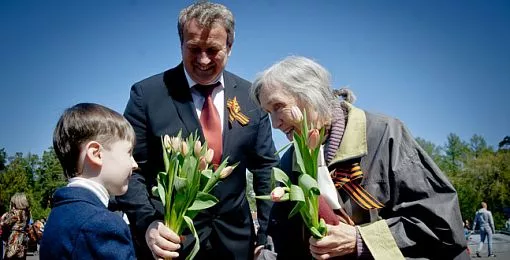 На празднике в Копейске тоже присутствовали ветераны Великой Отечественной войны, глядя на которых диву даешься – в 90 лет наши герои не только смогли прийти на парад, но даже самостоятельно прогуляться по главной улице города, с удовольствием пожимали друг другу руки и делились воспоминаниями. Вот что значит военная закалка!