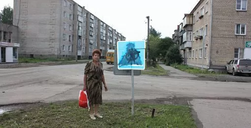 Жители поселка Горняк фотографируются со странным дорожным знаком