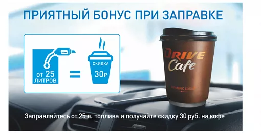 На АЗС «Газпромнефть», где реализуются горячие напитки, до 28 февраля действует акция. При заправке топливом от 25 литров каждый клиент может приобрести чашечку ароматного кофе по сниженной цене – на 30 рублей дешевле.