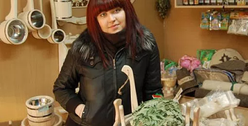 Территория рынка «Янтарь», как оказалось, пользуется популярностью не только у предпринимателей «со стажем», но и у начинающих. В боксе №89, над которым красуется витиеватая вывеска «С легким паром», глаза разбегаются от обилия всяческой банной утвари. Здесь и ушаты, и тазы-шайки, и удобные скамеечки — словом, все, что необходимо и уместно в бане и сауне. Удобные деревянные шезлонги, связки дубовых веников и даже стилизованные часы из дерева довершают интерьер торгового павильона, где уже больше года хозяйничает симпатичная Татьяна. У Василия и Татьяны Соловьевых семейный бизнес – торгово-производственная компания «Урал-Сауна».