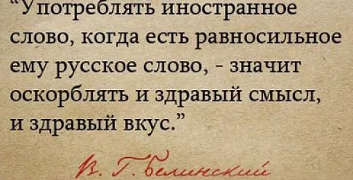 Недавно пришлось мне услышать в автобусе занятный разговор — о чем бы вы думали? — о вреде иностранных слов. «Неужели нельзя писать по-русски! А то куда ни глянь – всюду «мерчандайзеры» да «франшиза» и прочая иноземщина!» — возмущалась немолодая дама в соломенной шляпке.