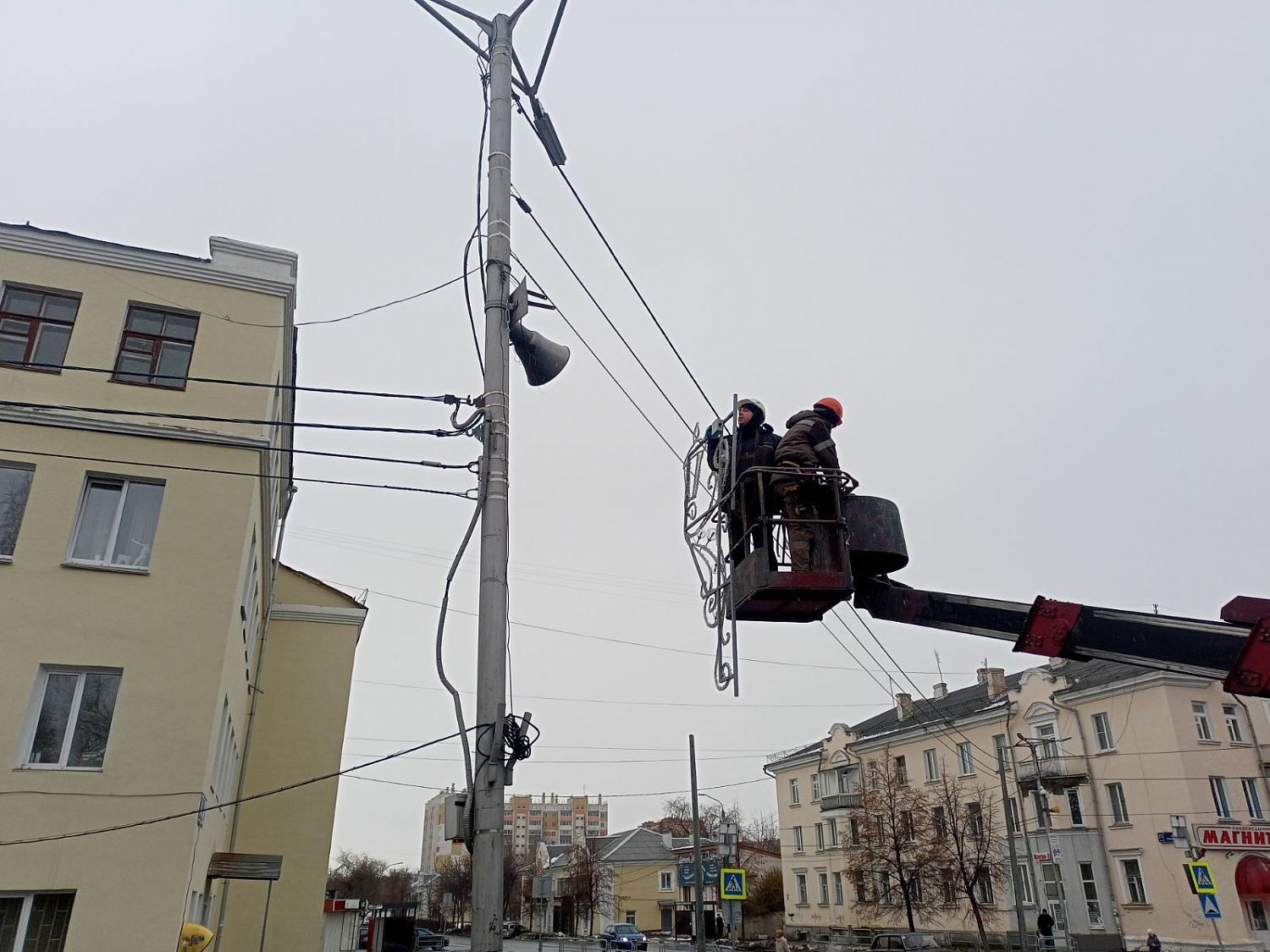 Старую иллюминацию сняли и после ремонта направят в поселковые теротделы. Светящиеся элементы в дальнейшем украсят улицы поселков.