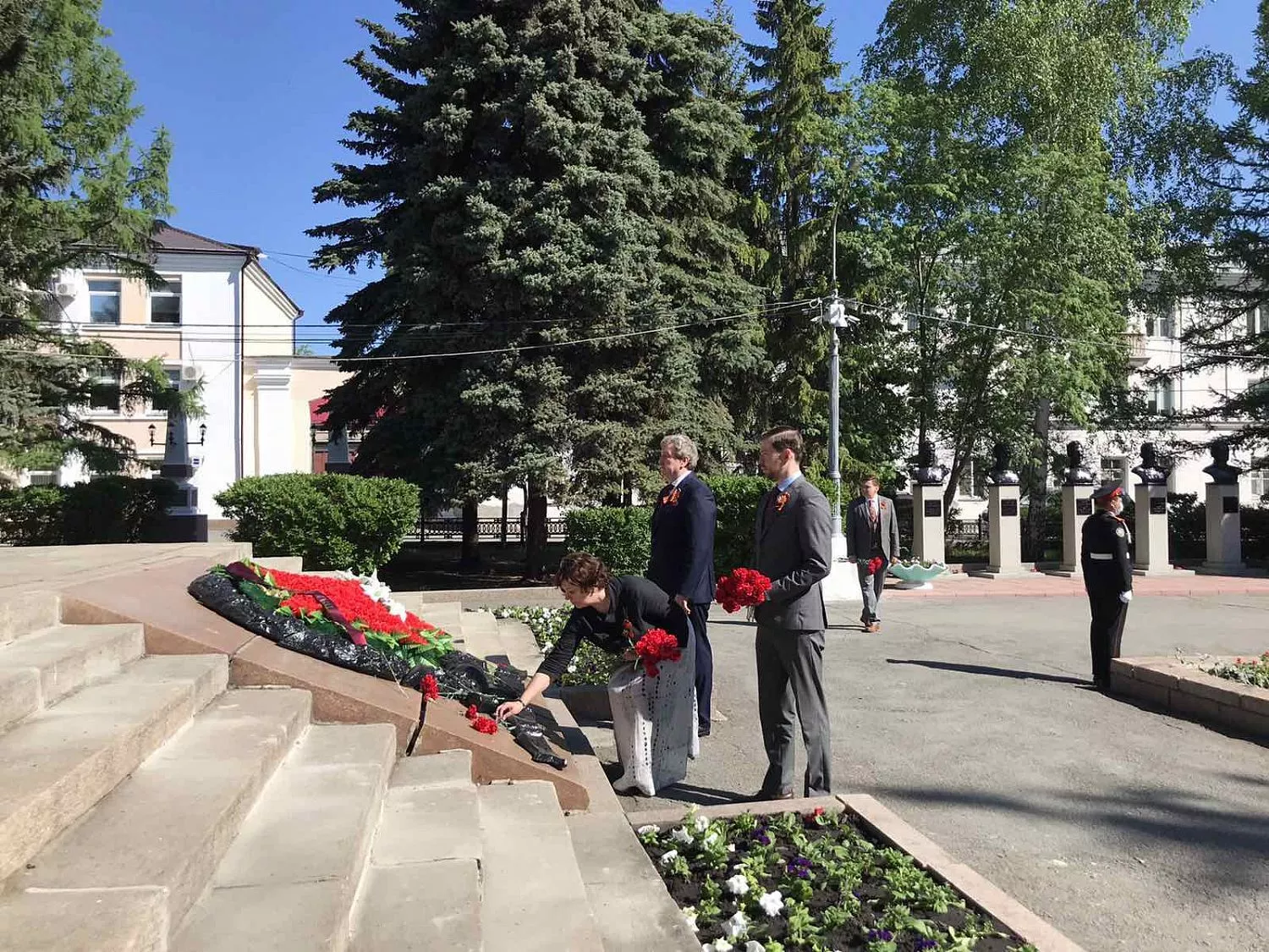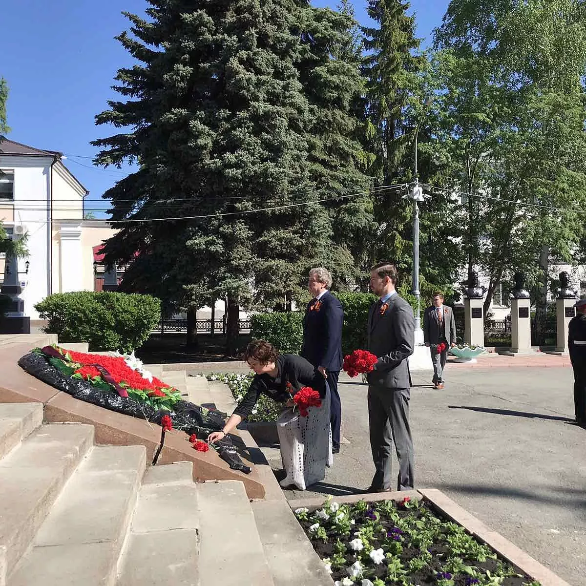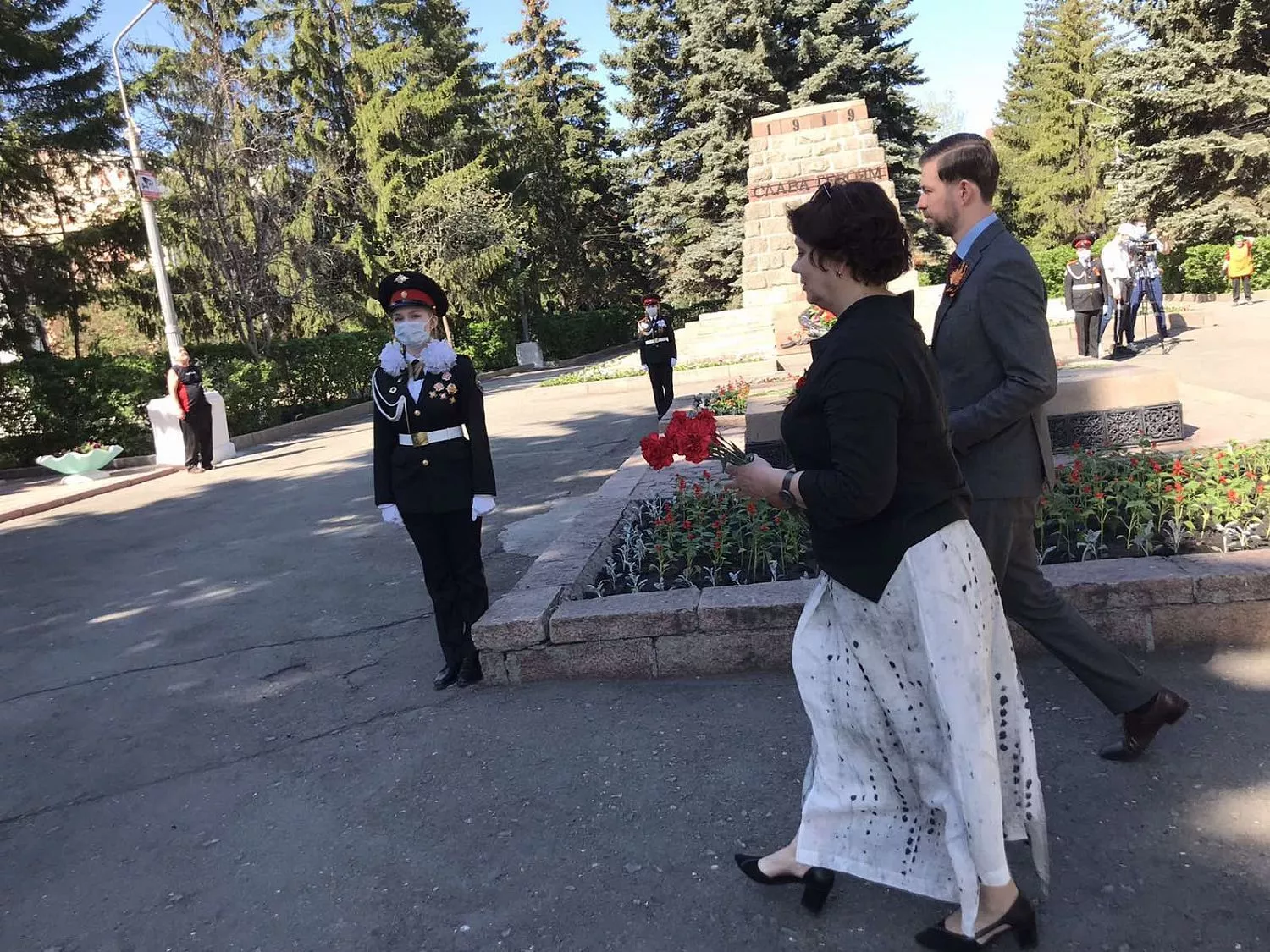 Цветы к Вечному огню и на Аллее Героев возложили глава Копейска Андрей Фалейчик, председатель городского Собрания депутатов Владимир Емельянов, депутат Государственной Думы Анатолий Литовченко, депутаты Законодательного Собрания области Марина Поддубная и Илья Бархатов.