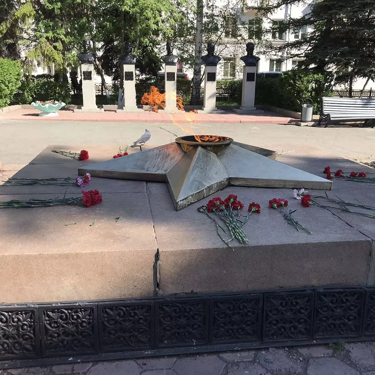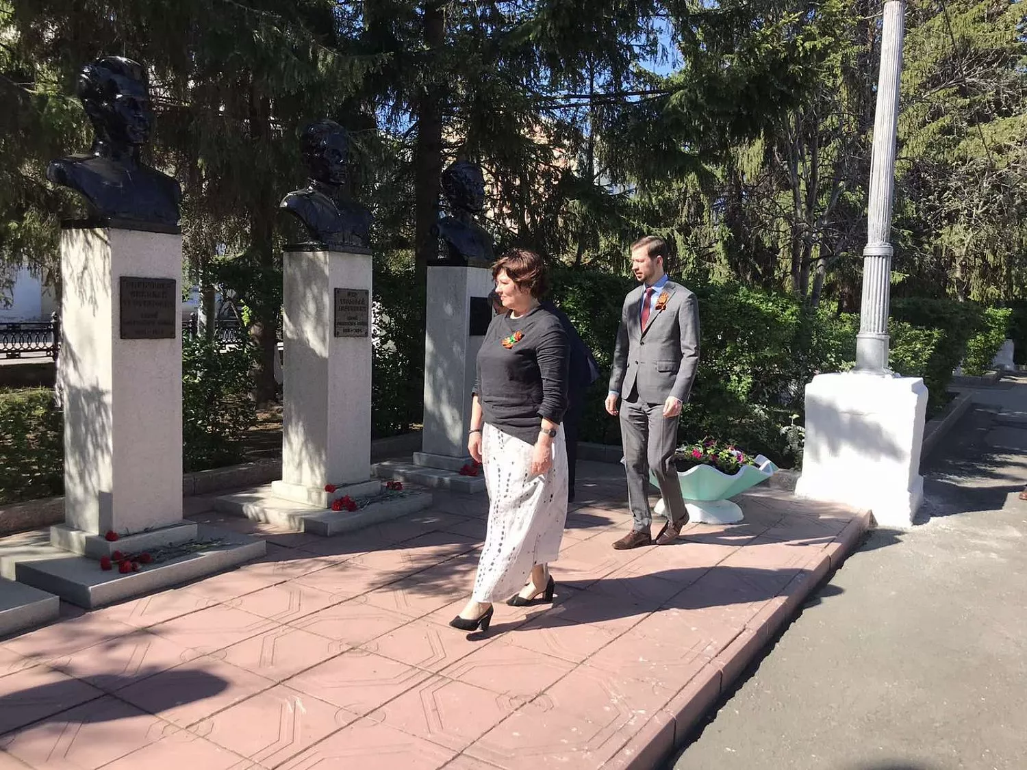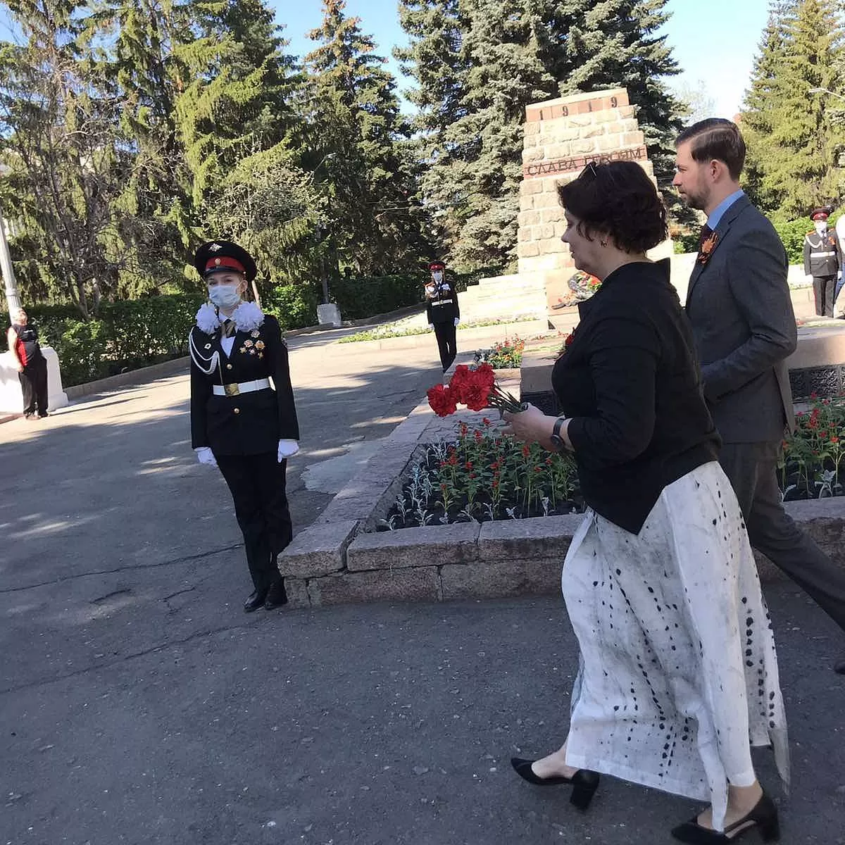 Цветы к Вечному огню и на Аллее Героев возложили глава Копейска Андрей Фалейчик, председатель городского Собрания депутатов Владимир Емельянов, депутат Государственной Думы Анатолий Литовченко, депутаты Законодательного Собрания области Марина Поддубная и Илья Бархатов.