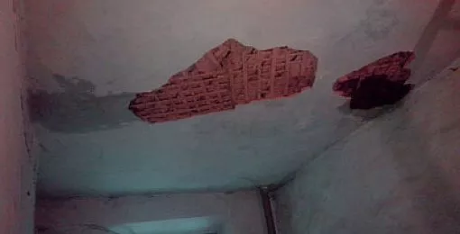 Присланные вам снимки были сделаны тоже в мае. Когда потолок в подъезде просох, часть штукатурки обрушилась на лестничную клетку. Слава богу, никто не пострадал».