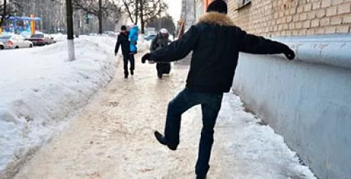 Передвигайтесь осторожно, наступая на всю подошву. Ноги расслабьте, руки должны быть свободны. Не беседуйте по телефону во время ходьбы. Пожилым людям рекомендуется опираться на палочку с резиновым наконечником или специальными шипами.