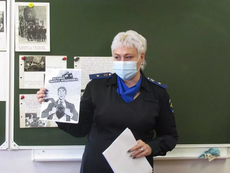 Инспектор подразделения по делам несовершеннолетних Екатерина Ларченко рассказала ребятам, какими уловками пользуются интернет-мошенники, а также телефонные мошенники. Целью инспектора было предупредить самих ребят, а также через них донести эту информацию до родителей и родственников кадетов.