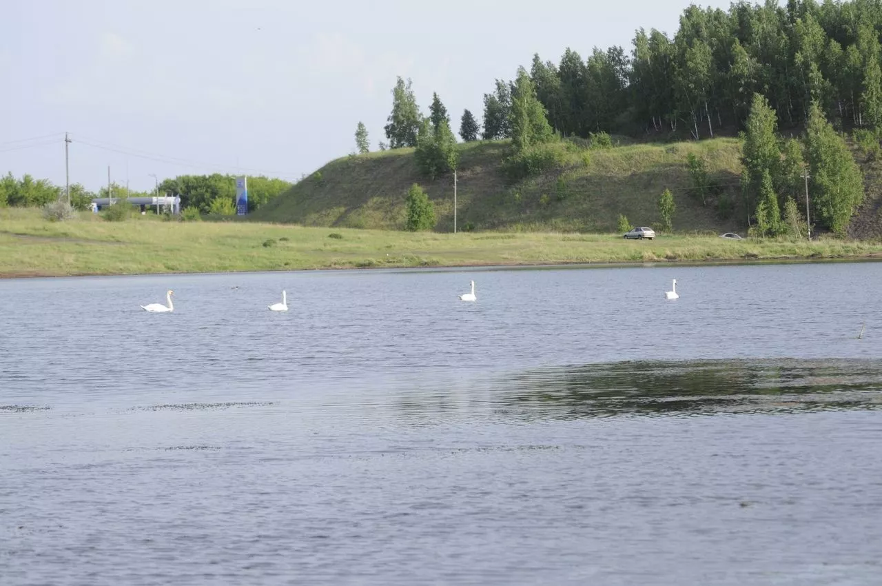 На карьер возле поселка шахты 205-й прилетели лебеди
