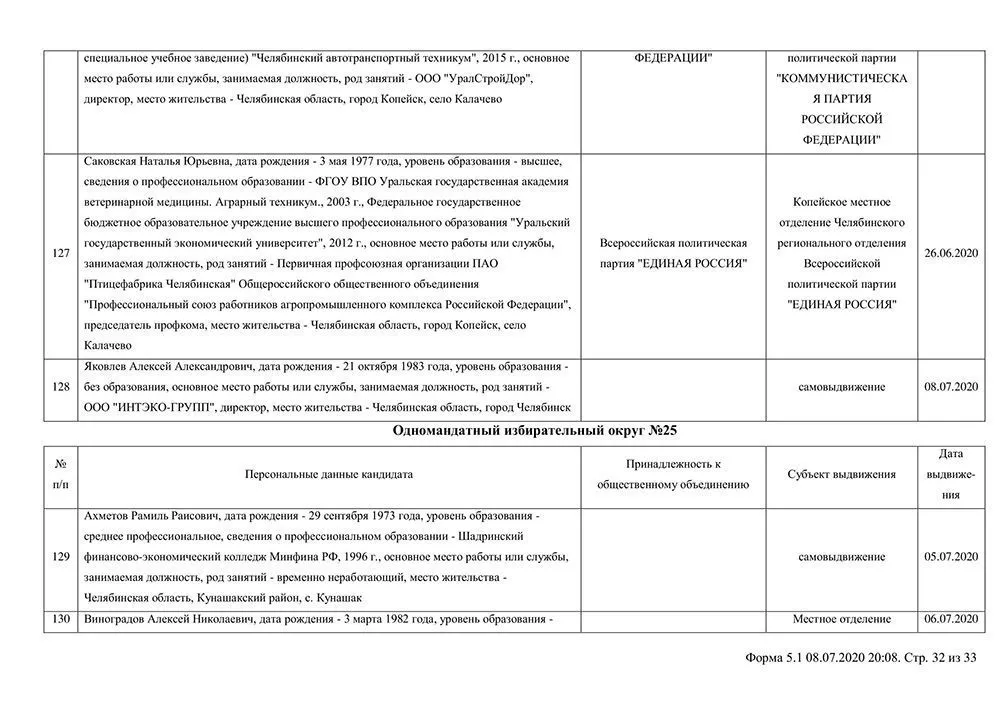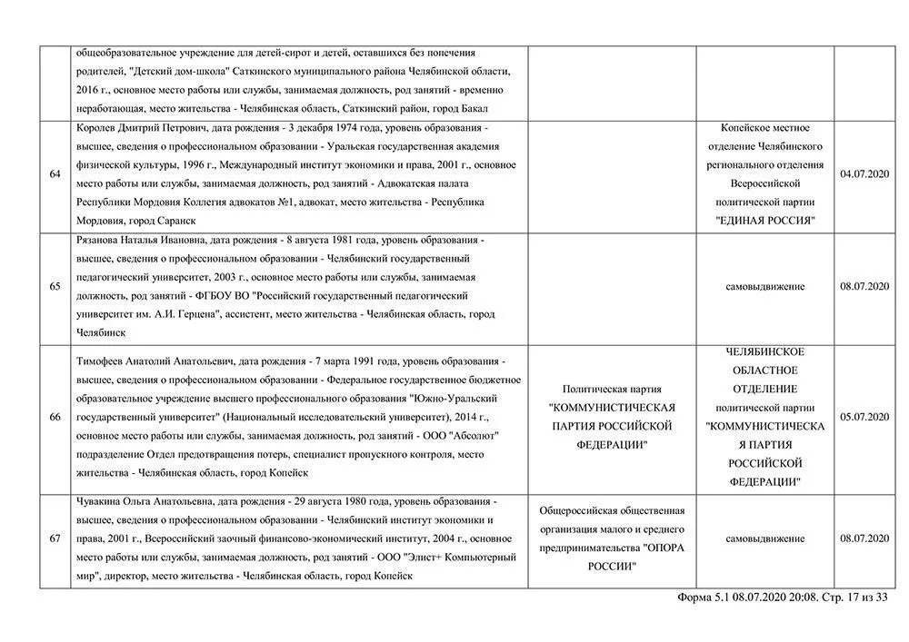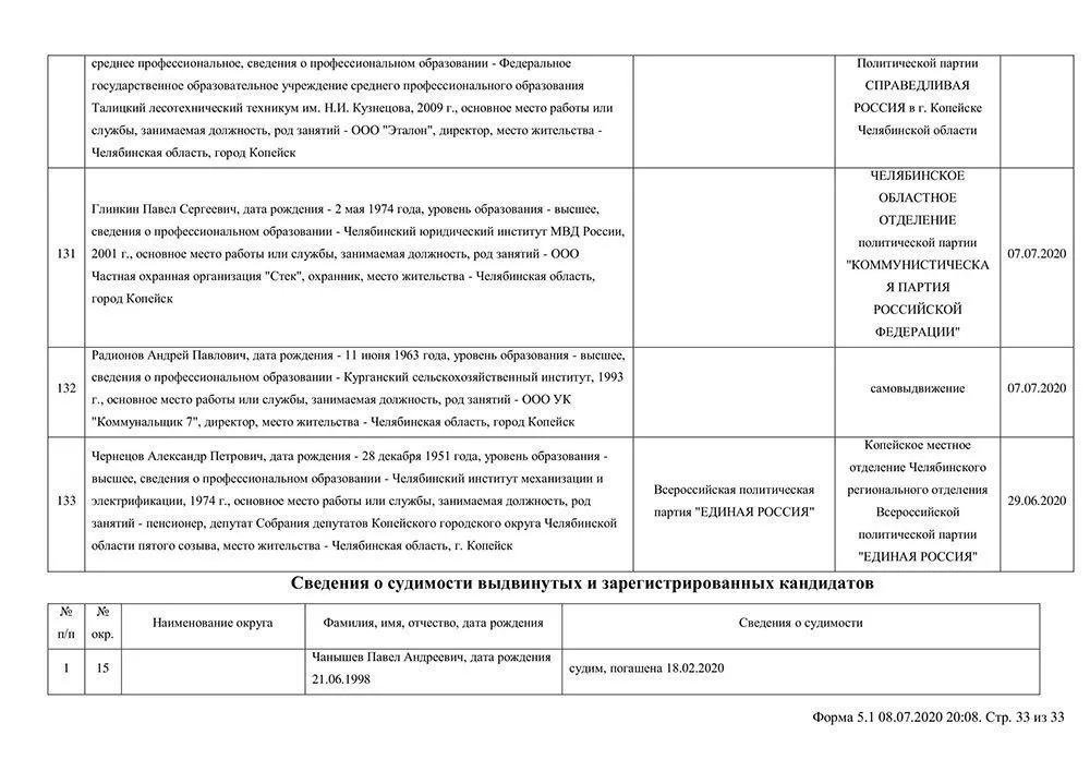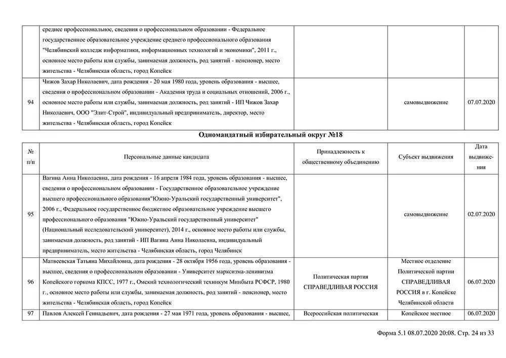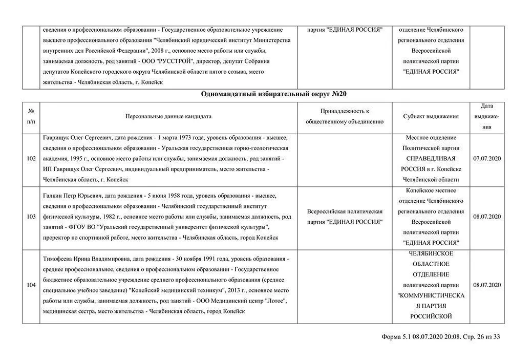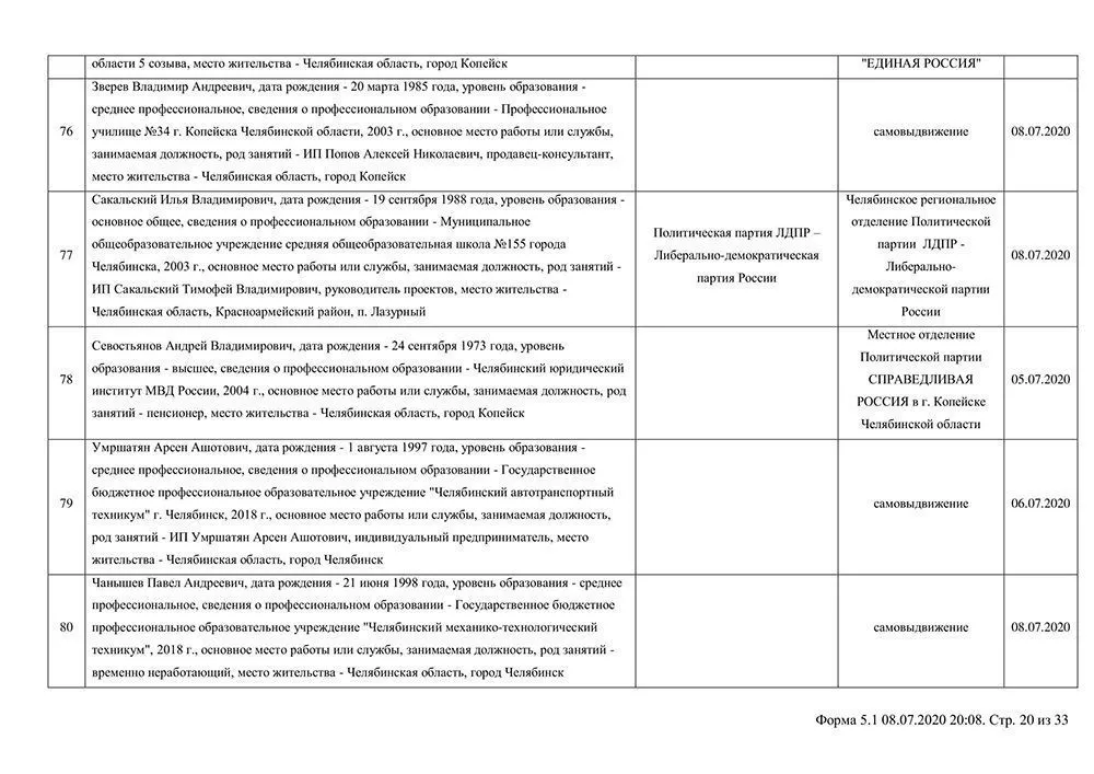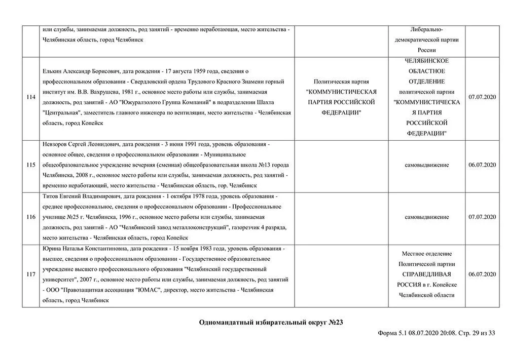 Сведения о выдвинувшихся кандидатах в депутаты Собрания депутатов Копейского городского округа.