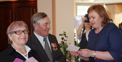 А вот Таисия Николаевна Богатырева пришла на торжество без мужа: ее супруг, кадровый военный, участник Великой Отечественной, подполковник Богатырев Виктор Васильевич ушел из жизни, прожив 97 лет. А поженились они в далеком 1940 году. Сама Таисия Николаевна во время войны была вольнонаемной в погранотряде, где служил муж. 1 мая 2015 года ей исполнится 94 года.