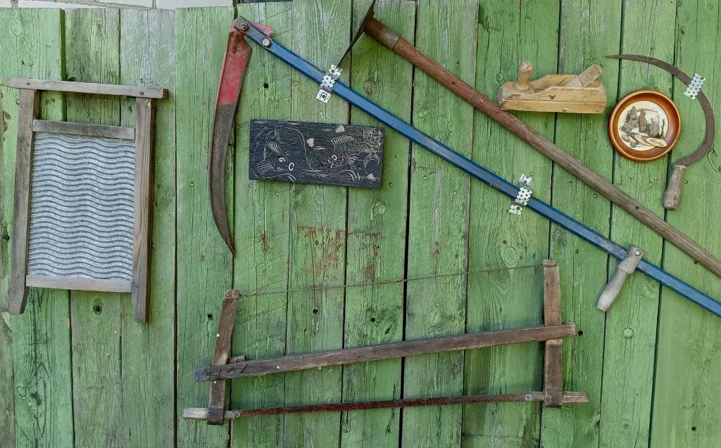 А ещё на входе на территорию виллы, на заборе, есть своеобразный музей старого ручного инструмента. Многие ли из вас помнят, как выглядит стиральная доска, серп или коса? Наше поколение помнит, а вот для внуков, сказала Ольга, это было настоящим открытием.