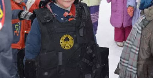 «Урок мужества» прошел на детской площадке для ребята из старшей и подготовительной групп. Командир роты майор полиции Александр Задорин и заместитель командира роты Олег Жуков рассказали о буднях работы правоохранителей и продемонстрировали спецсредства, применяемые при задержании. Психолог отдела Юлия Жарченко рассказала собравшимся об истории праздника 23 февраля. Кульминацией «Урока мужества» стала встреча с кинологом Лидией Попковой и ее четвероногим помощником немецкой овчаркой Мухтар, которые показали выполнение команд из общего курса дрессировки. От увиденного ребята были в восторге, а по окончании встречи их ждали сладкие подарки.