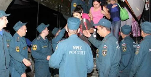 26 июля спецборт МЧС России доставил из Симферополя 100 переселенцев из Украины, которые бегут в Россию, спасаясь от гражданской войны.