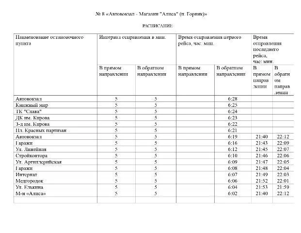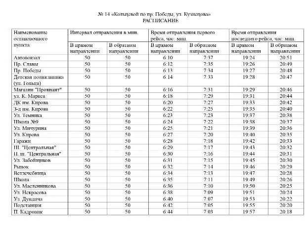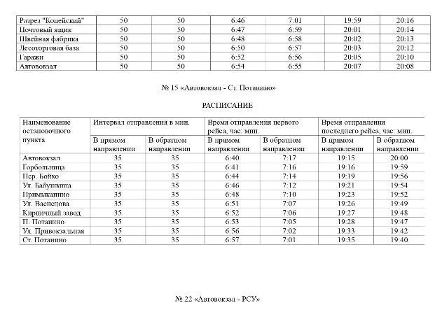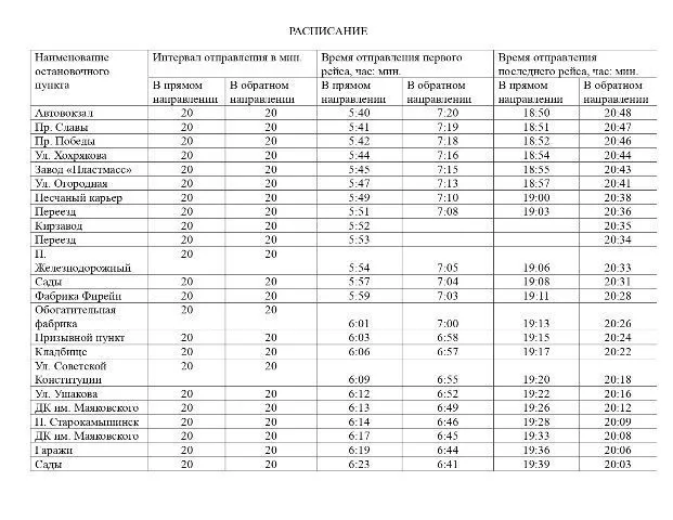 Пресс-служба городской администрации публикует расписание движения транспорта по нерегулируемым маршрутам с 15 июня 2020 года.