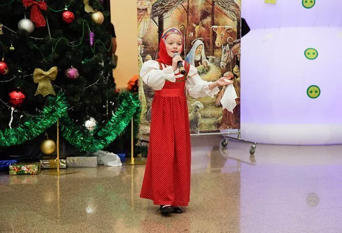 Следующим творческим подарком для гостей стал спектакль воскресной школы «Морозко». Над созданием его трудились вокальная группа храма: Алевтина Кучеренко, коллектив народного пения под руководством Полины Пономаревой, народный танцевальный коллектив под руководством Александра и Аллы Мальцевых. Режиссер-постановщик сказки – Елена Галеева. Сказка погрузила зрителей в атмосферу русских православных традиций и обычаев празднования Рождества Христова, рассказала о смирении, доброте, прощении и вере в чудо.