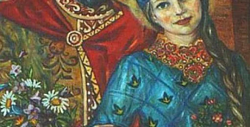 Один из княжеских отроков забрел в село, называемое Ласково. Пришел он к воротам одного дома и никого не увидел. И зашел в дом, но никто не вышел ему навстречу. Тогда вошел он в горницу и увидел удивительное зрелище: за ткацким станком сидела в одиночестве девушка и ткала холст, а перед нею скакал заяц.