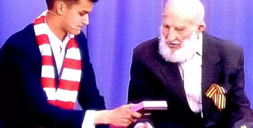 102-летний копейчанин был приглашен на запись программы в качестве гостя. С целью передать ветерану деньги туда же приехал и нападающий «Спартака» Вячеслав Кротов.