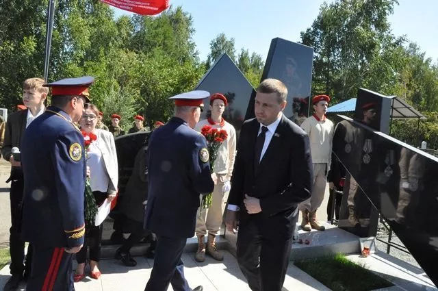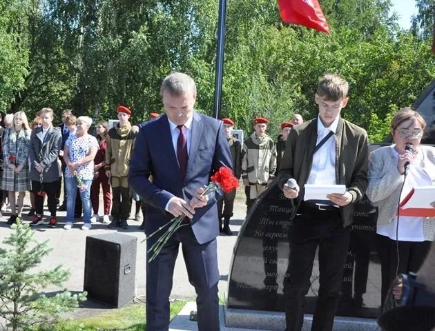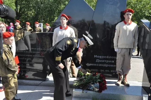 Присутствующие почтили память Димы Новоселова минутой молчания, возложили цветы к монументу, а почетный караул дал троекратный залп, отдавая военные почести геройски погибшему юнармейцу.