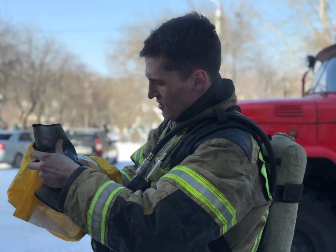 Учения предполагали и еще один тревожный момент: в ходе ликвидации пожара от постового на посту безопасности пришло сообщение, что одно звено газодымозащитной службы, находившееся в здании, не выходит на связь. На поиски коллег отправилось резервное звено. Через несколько минут условный пожар ликвидировали, а все спасатели вышли из здания.