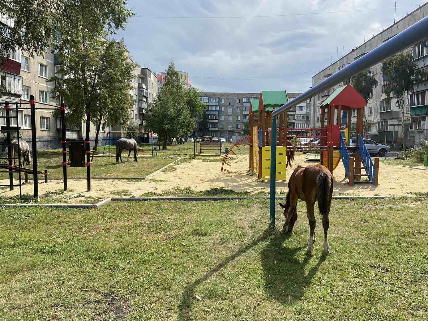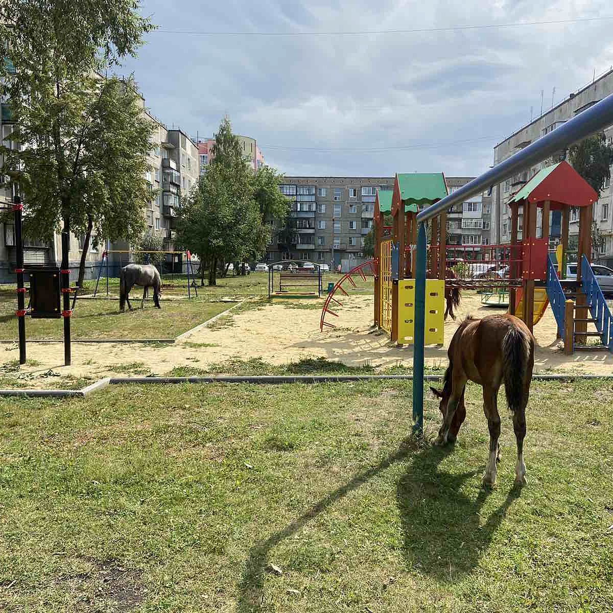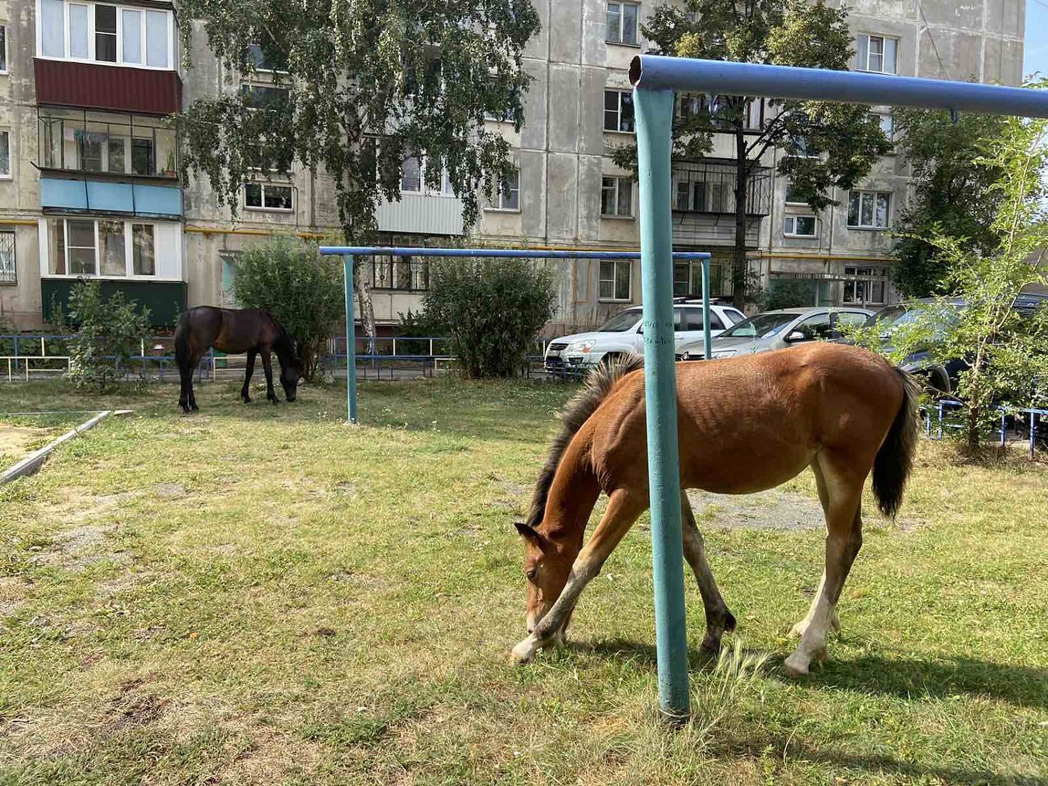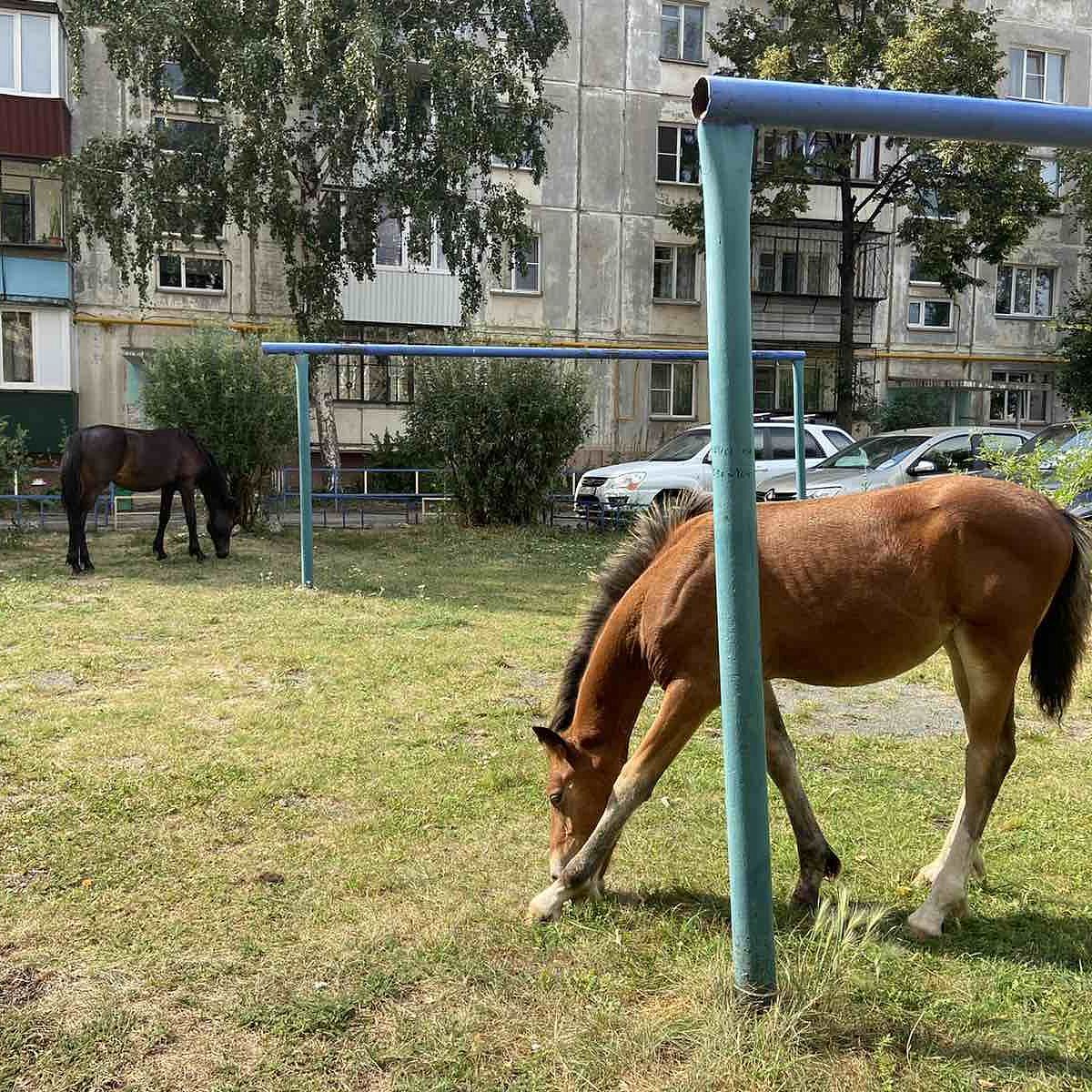 Данный фоторепортаж под рабочим названием «Кони в большом городе» был сделан во дворе дома №19 на улице Томилова.