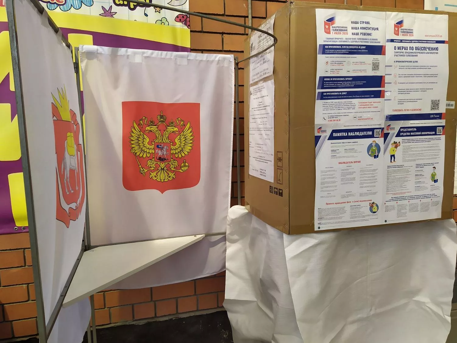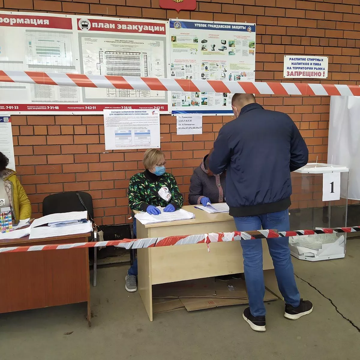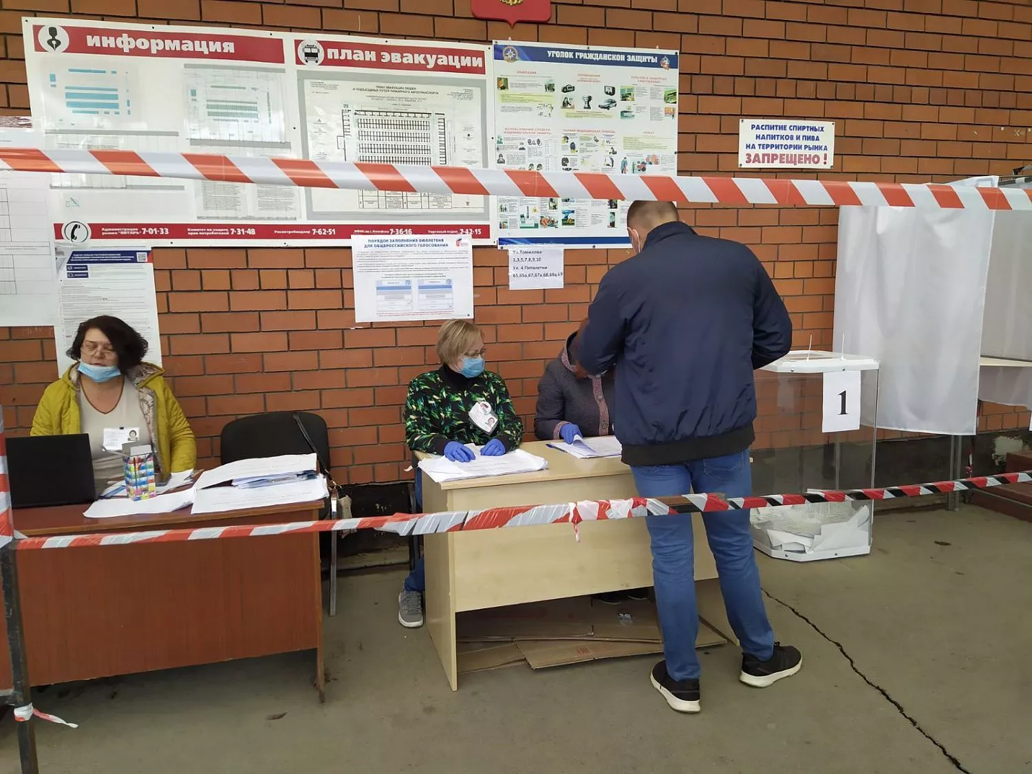 Участок № 1902 обычно располагается в служебном помещении рынка «Янтарь». Так было и с 25 по 30 июня в ходе предварительного голосования. Однако сегодня, 1 июля, участок был организован прямо на открытом воздухе.