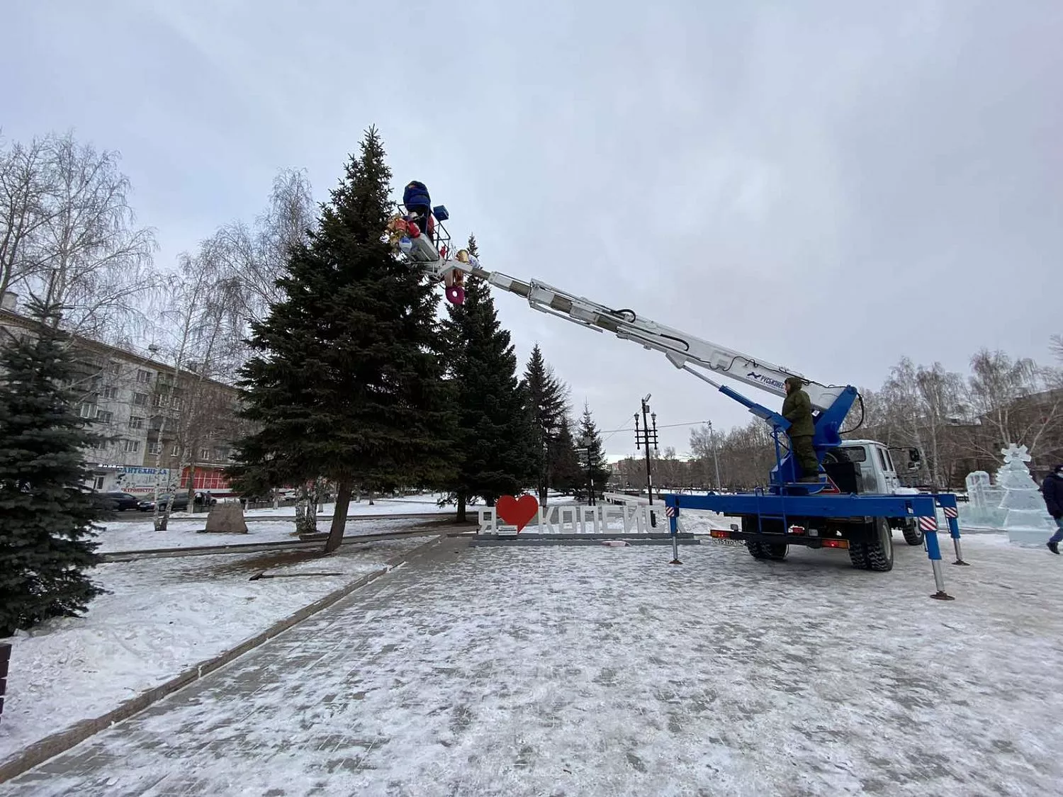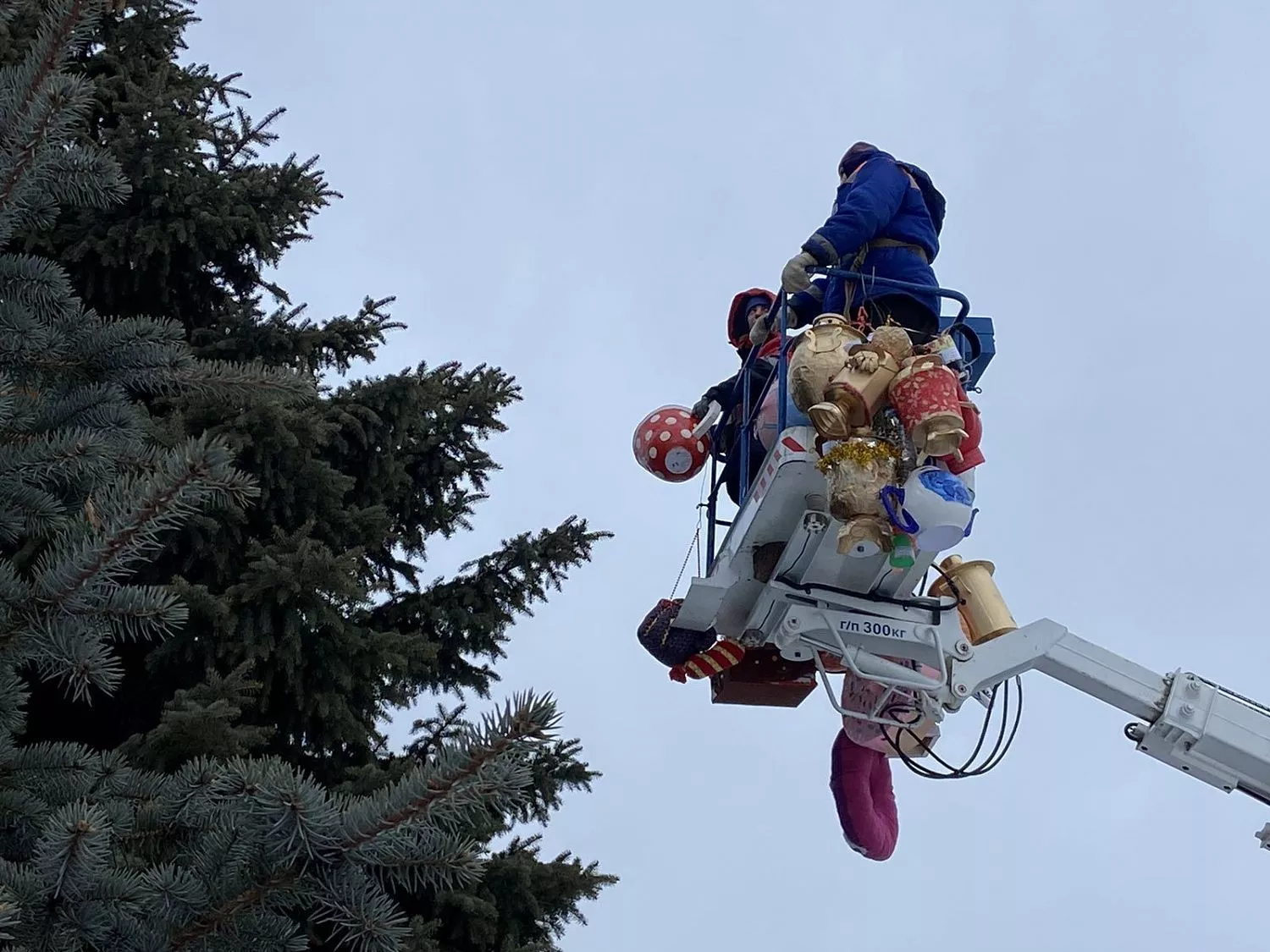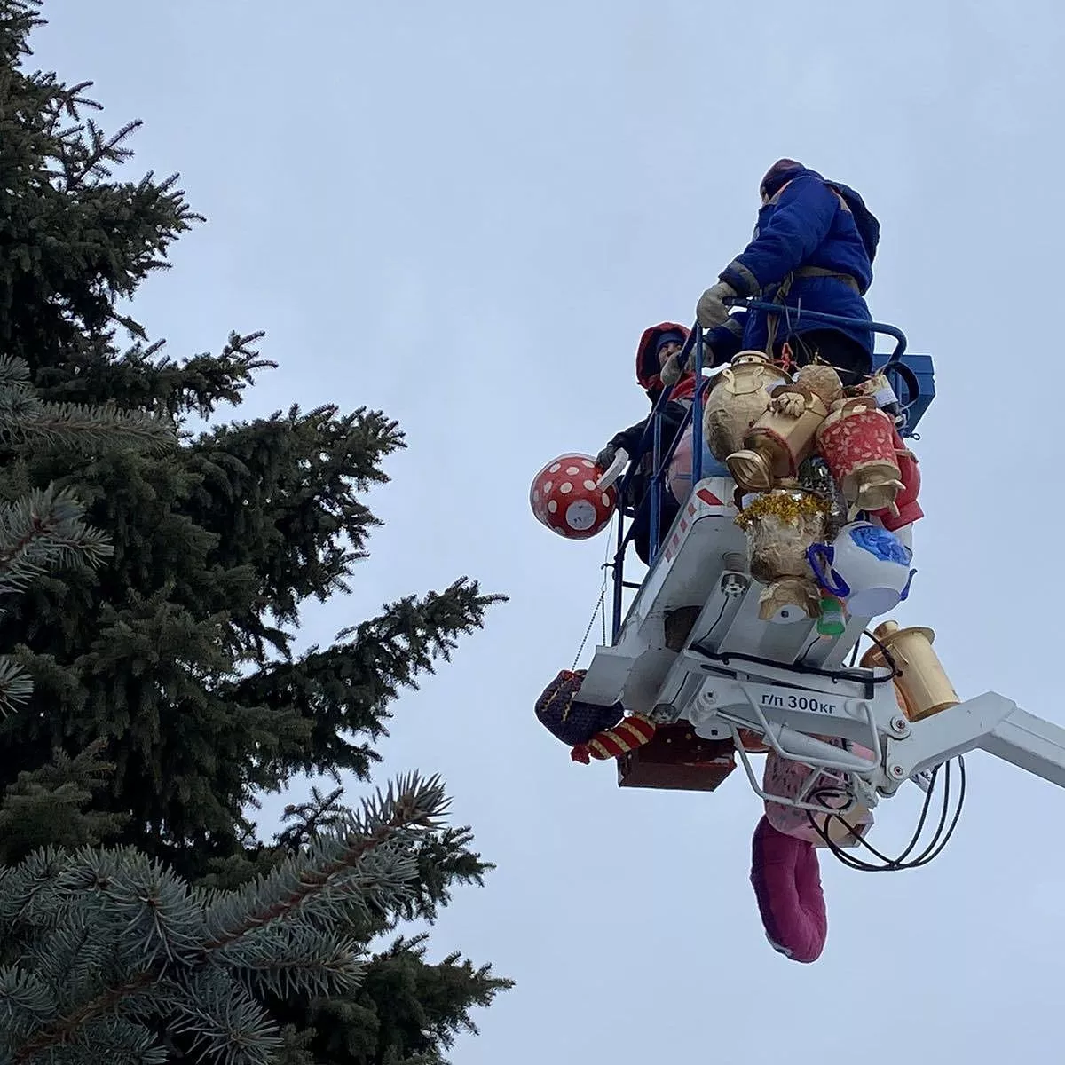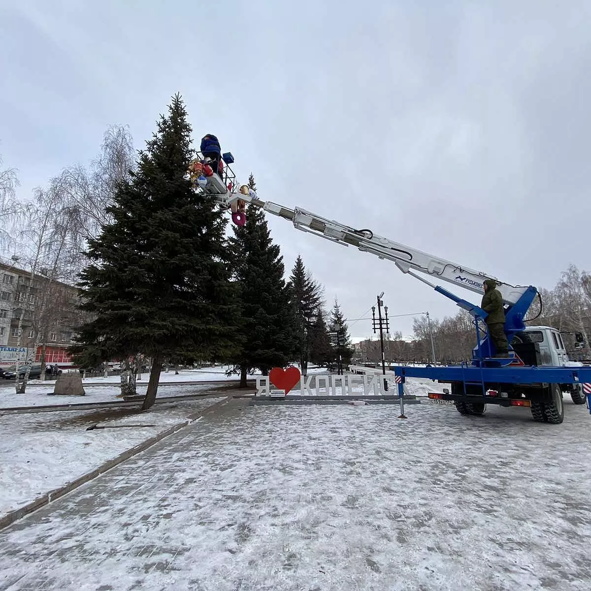 Завершив процесс украшения главного новогоднего дерева, рабочие убедились, что осталось еще много игрушек, изготовленных руками копейских дошколят, сообщает телеграмм-канал «НеКопейский рабочий». Украшения решили развесить на растущих на площади Трудовой Славы елях.