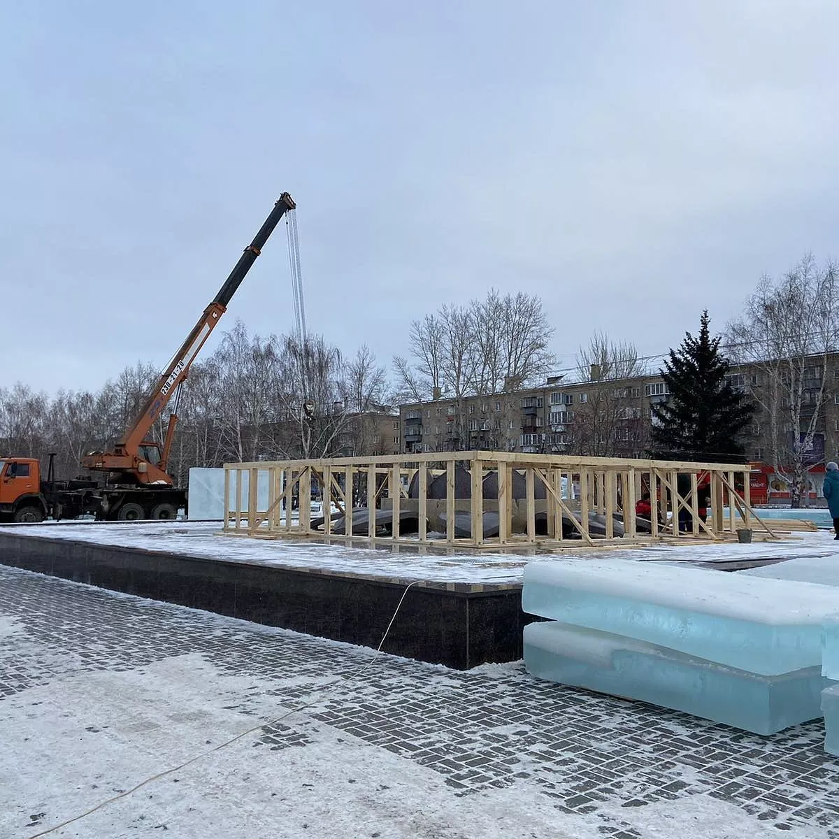 На площади Трудовой Славы вовсю развернулись работы по строительству зимнего городка.
