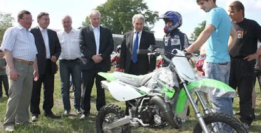 В минувшую пятницу глава округа Михаил Конарев вручил спортивно-техническому клубу «Вираж» новый мотоцикл. Черно-зеленый японец марки «Кавасаки» с объемом двигателя в 60 кубических сантиметров тут же был опробован ребятами.