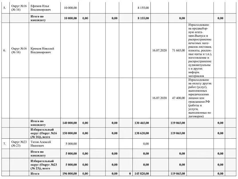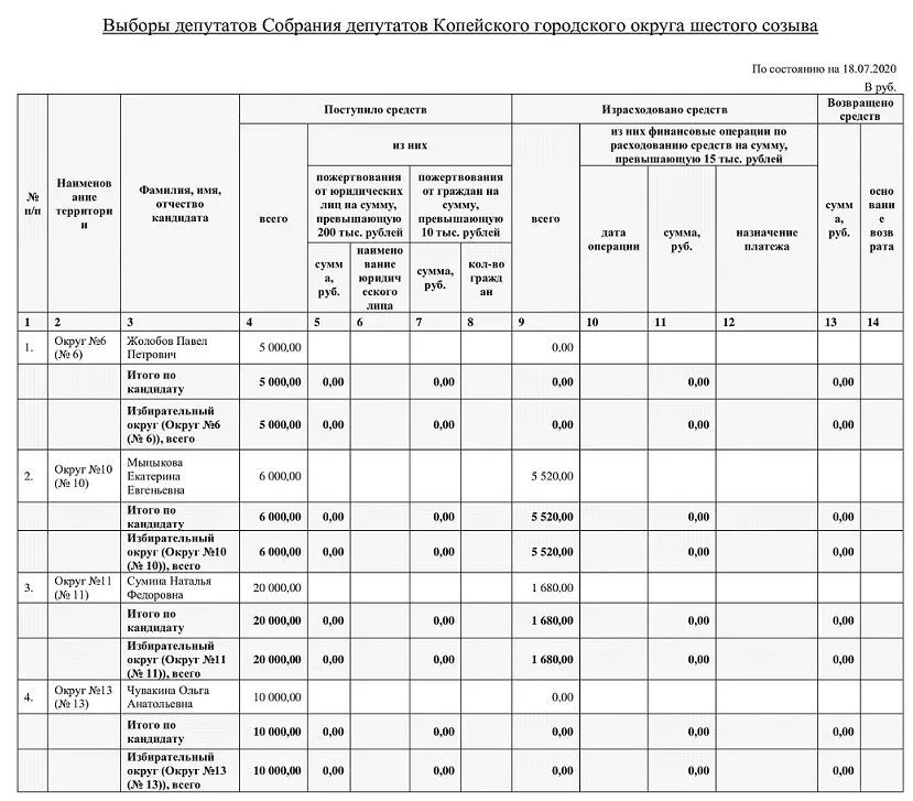 СВЕДЕНИЯ о поступлении средств в избирательные фонды кандидатов и расходовании этих средств (на основании данных, предоставленных филиалами ПАО Сбербанк и другой кредитной организацией)