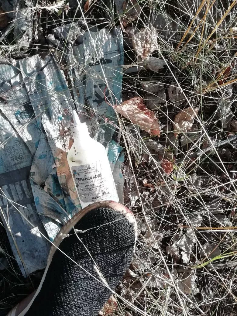 - Лесок находится около дороги, он совсем небольшой. Но вместо природных красот в нем привлекают внимание мешки и коробки с медицинскими отходами. Сотни баночек из-под йода, перекиси водорода, мешки с использованными шприцами – все это валяется здесь не один день. Пакеты порвались от времени, мусор валяется на земле, - комментирует Людмила.