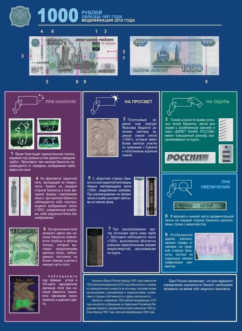 Предъявившему купюру придется дать объяснение, и постараться вспомнить, как именно данная купюра попала к нему в кошелёк, за что предусмотрено наказание уголовным кодексом Российской Федерации, а именно статьей 186 «Изготовление, хранение, перевозка или сбыт поддельных денег или ценных бумаг».