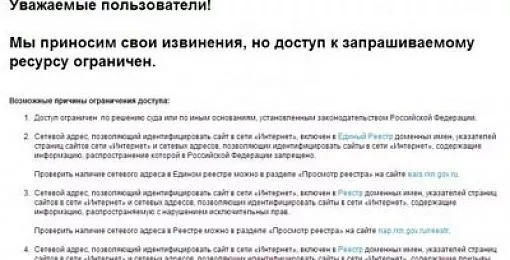 В соответствии с Федеральным законом от 28.07.2012 № 139-ФЗ и Постановлением Правительства РФ № 1101 от 26 октября 2012 года введена единая автоматизированная информационная система «Единый реестр доменных имен, указателей страниц сайтов в информационно-телекоммуникационной сети Интернет и сетевых адресов, позволяющих идентифицировать сайты в сети Интернет, содержащие информацию, распространение которой в Российской Федерации запрещено». В соответствии с Законом, оператор связи ограничивает доступ к сайту в сети Интернет после включения сетевого адреса, идентифицирующего сайт, в указанный Единый реестр.